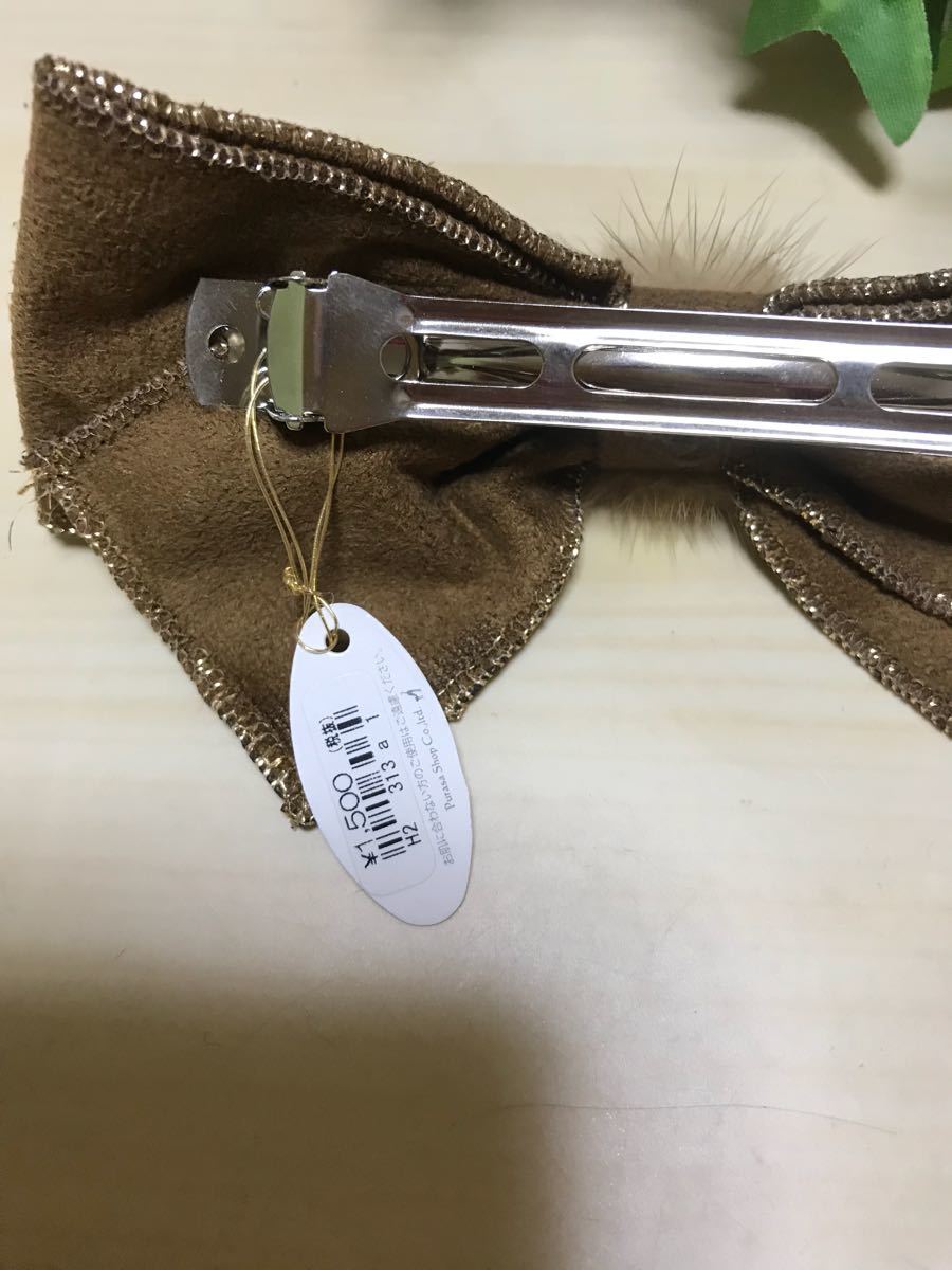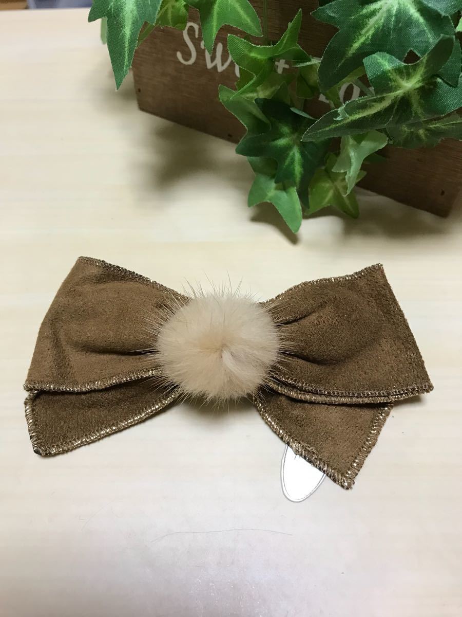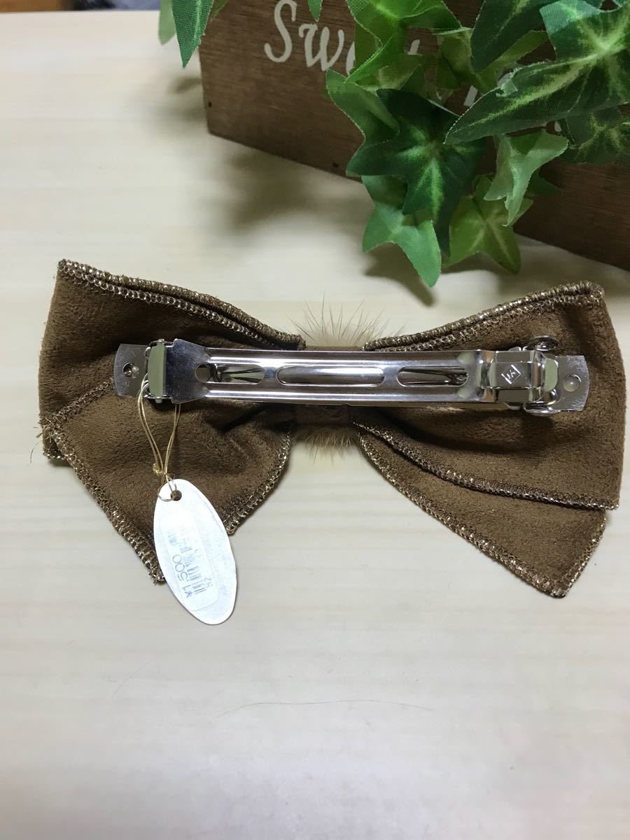 新品未使用のキャメル色のリボン型バレッタです。