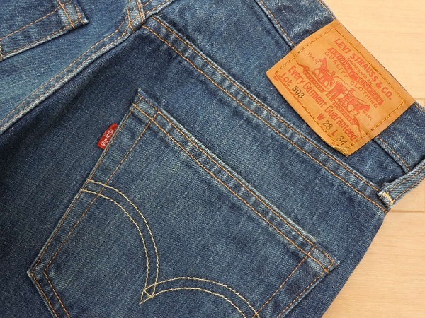●リーバイス503のジーンズです。あくまでも古着のため、ノークレームノーリターンでお願いいたします。使用感は、ございますが、とくにダメージございません。定番のストレートで、縦落ち始めの状態ですので、これからの色落ちが期待できます。 裾はオリジナルのチェーンステッチです。