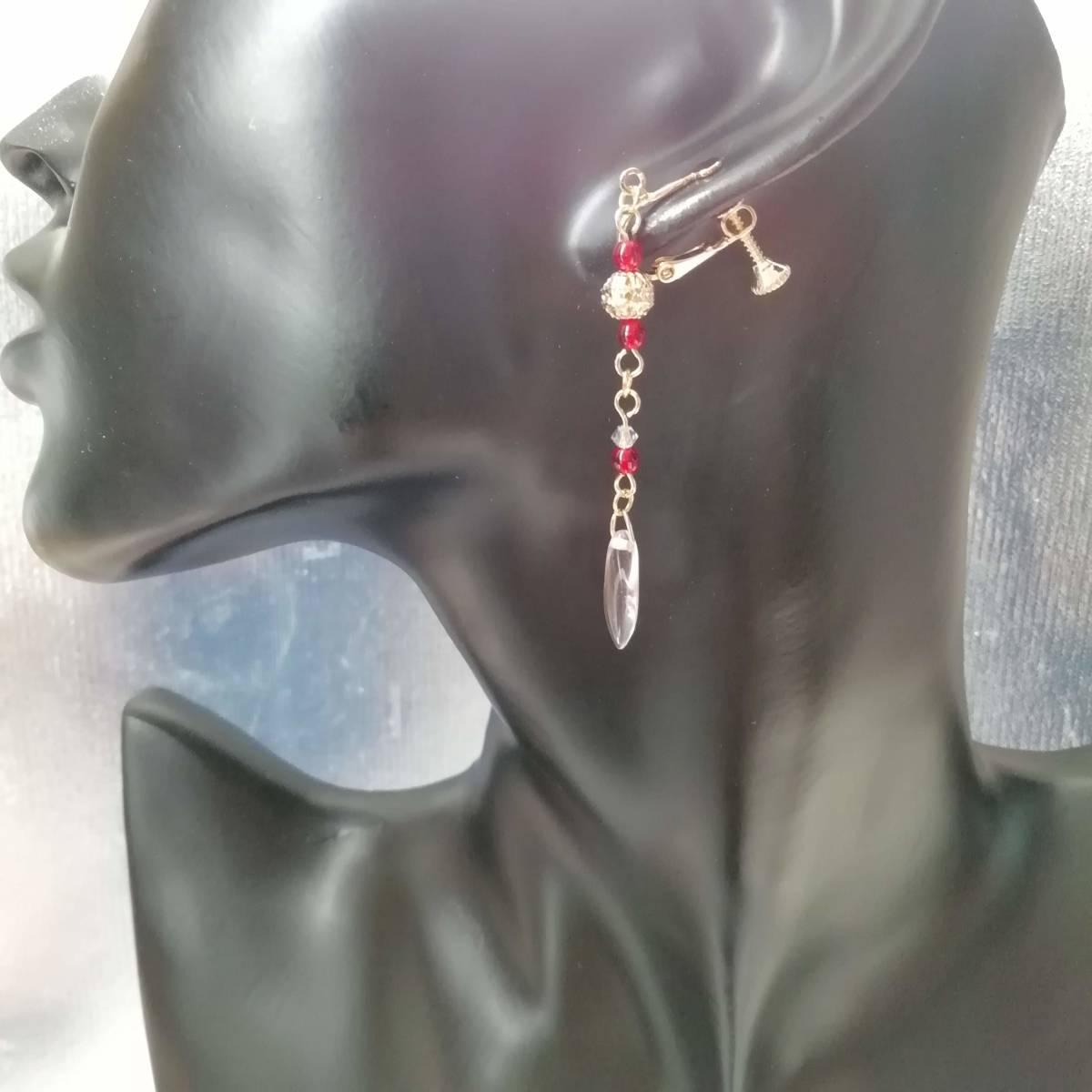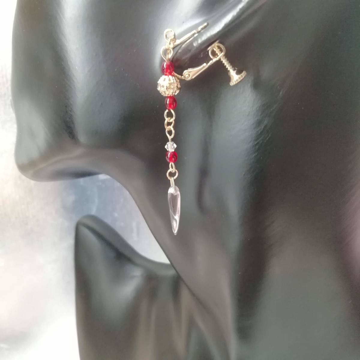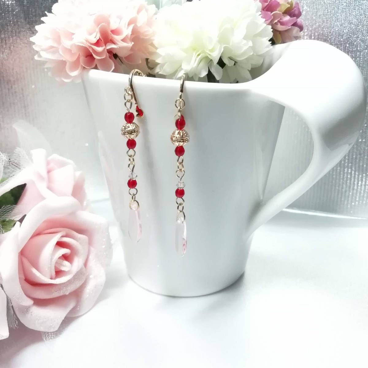 ★商品内容★ ★チェコビーズ薄桜色ダガーとシャムルビーのハンドメイドイヤリング★ゴールド・シンプル・上品・薄桜色・赤・クリスタル・透かしビーズ ゴールドを基調にした、 ゴージャスで上品な雰囲気のイヤリングです*・**。☆・*.・**.・ 吊る下げたダガービーズの透き通るような薄桜色が 可憐で優しい女性らしさを印象付けます**。・.*・**。☆・**.・*・**。 普段使いはもちろん、オフィスにも、 お出掛けやお洒落のワンポイントにも最適です・**.・☆・**.・**.・ 【素材】 透かしメタルビーズゴールド6mm チェコビーズダガーロザリン(チェコ産)16mmx5mm チェコビーズライトシャムルビー(チェコ産)3mm スワロフスキー5328クリスタSシェイド(オーストリア製)3mm カンより垂れ下がる長さは、約5.3㎝です。 Eー458 ★商品状態★ ・画像と実物の色味が多少異なる場合があります。 ・緩衝材(プチプチ等)を使用し、防水梱包でお届け致します。 ★注意事項★ ***~ご購入前に必ずお読み下さい~*** ***商品について*** *一点一点心を込めて作っておりますが、手作りなため多少の歪み等あるかもしれません。 手作りの味わいと、世界で一つだけの作品とお考えいただければ幸いです。 *デリケートな商品ですので、強く引っ張ったりすると破損する事もあります。 お取り扱いにはご注意ください。 *写真も完璧な色合いの表現にはなっていない場合もあります。 *基本イヤリング金具は跳ね上げ式ネジ付きを使って作成しています。 ご希望によりピアスへの変更も承っております【フックピアスへの変更(無料)/キャッチピアスへの変更(追加料金120円が必要です)】 ~ご注文の際にメッセージ欄よりお申し付けください~ 尚、金具変更のご希望が無い場合は、掲載された写真の金具にてお送り致します。 *金属アレルギーや化学物質アレルギーなどへの対応はしておりませんので、ご心配な方はご遠慮下さいますようお願い致します。 *永くご愛用頂くために、ご使用後は柔らかい布等で軽く拭いてください。 ***ご質問について*** *ご購入前にお願い致します。 日中は仕事をしておりますので、ご返事が直ぐに出来ない場合がございます。 出来る限り早い対応を心がけますが、ご了承ください。 また、発送までには、お振込み確認後、翌日の発送を心がけておりますが、仕事の都合により2~3日程かかる場合がございます。(その際にはナビにてご連絡いたします) お急ぎの場合は、極力対応いたしますが、場合によっては対応致しかねる事もあります。ご了承下さいませ。 落札後4日以内にお手続き、ご連絡が無い場合は落札者都合で削除致します。 発送日指定・ご入金の予定が1週間以上先をお考えの方は、入札の前に質問よりご連絡くださいませ。 予めご了承の上、ノークレーム・ノーリターンでお願い致します。 | |||