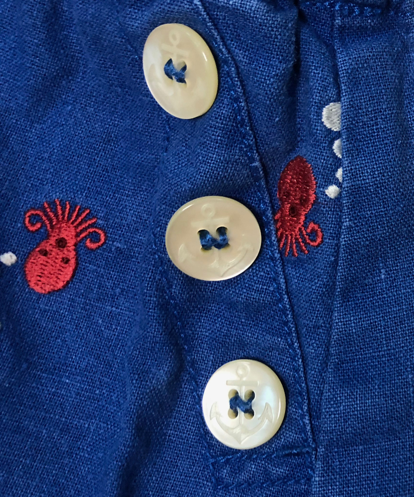 タコさん刺繍が入り、アンカーボタンと流石のBOOFOOWOO(ブーフーウー)、大変お洒落で凝った作りです。