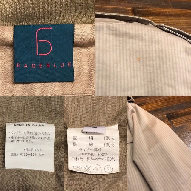 G258 メンズコート RAGE BLUE レイジブルー おしゃれ 人気 カジュアル ブルゾン ジャケット アウター 無地 ベージュ トレンチ/ L