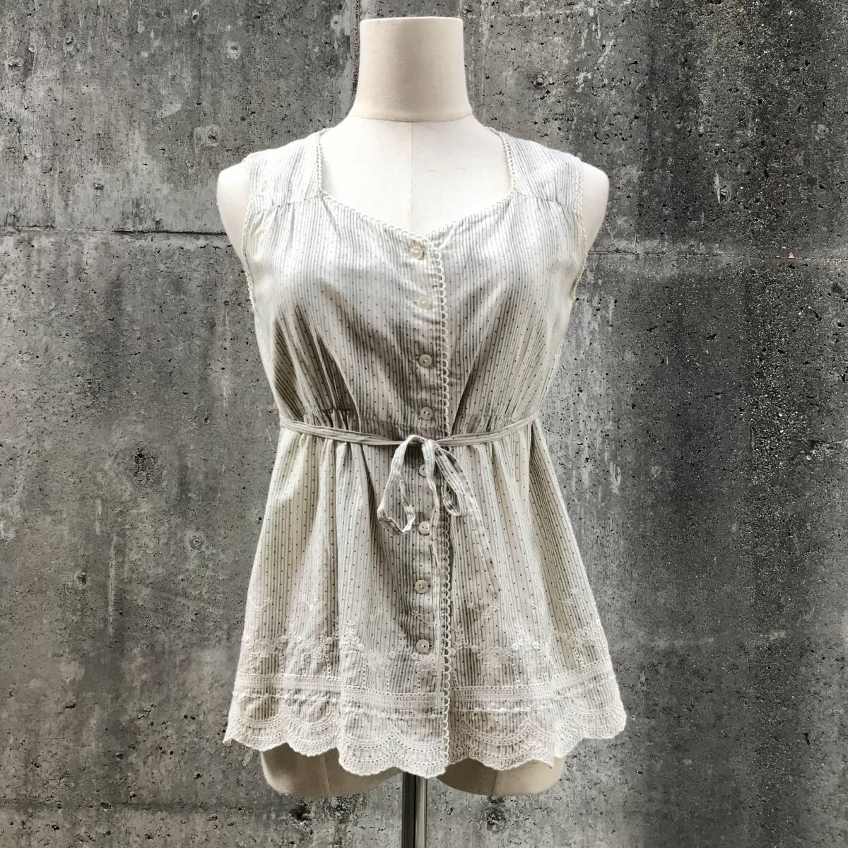 ローラアシュレイ レース使い総柄リボン付ノースリーブシャツブラウス/トップス