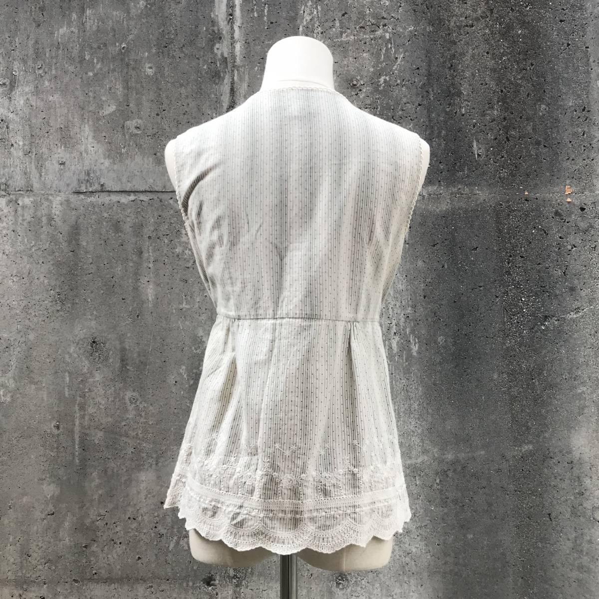 カラーはアイボリー×グレー系、素材は表/綿100%、裏/綿100%、レース/レーヨン100%になります。