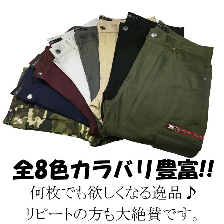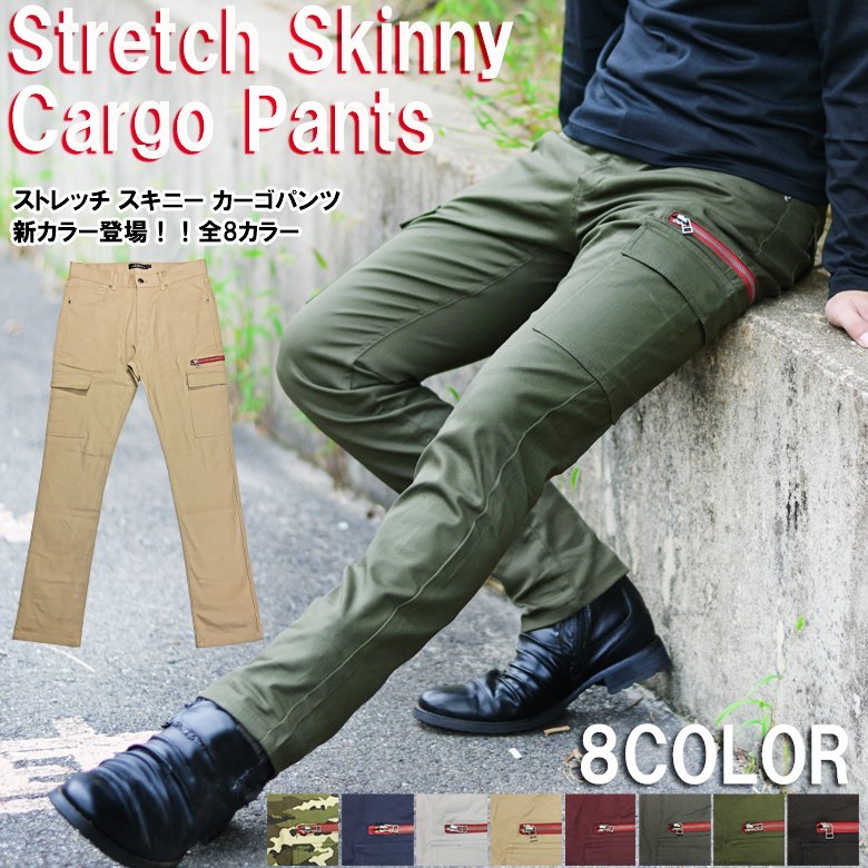 レッドZIPストレッチツイルジップスキニーカーゴパンツ メンズ カーゴパンツ スキニー【jb-62218】新品ネイビーLL