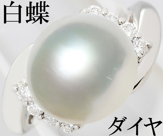 上品 綺麗☆白蝶真珠 南洋真珠 パール 12ミリ ダイヤ 0.26ct リング 指輪 Pt900 プラチナ 11.7~12.3ミリ フォーマル 13.5号♪鑑別書付・送料込 | ||
