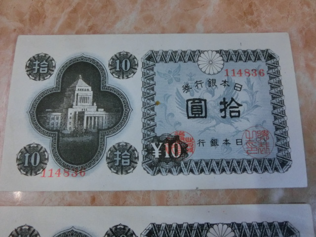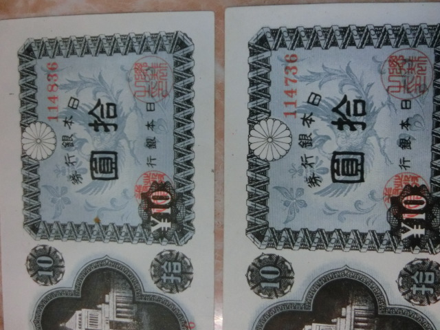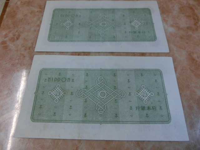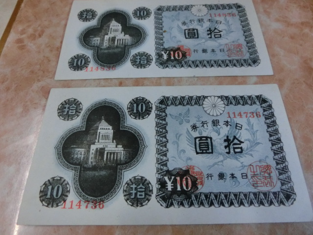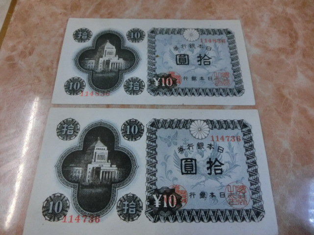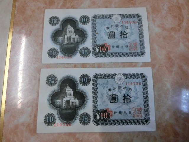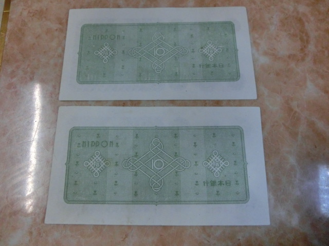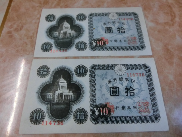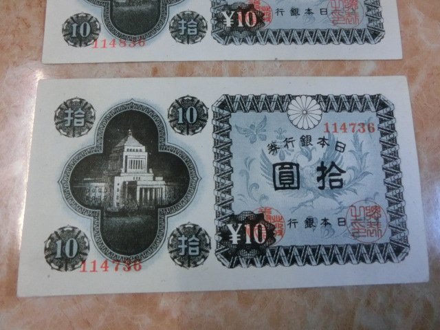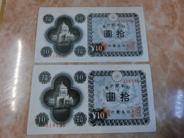 日本銀行券A号10円 議事堂10円で武生工場の極美品~を2枚セットです。