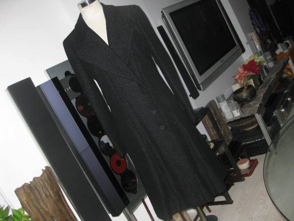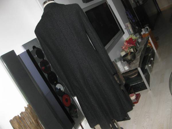 素材:ウール53%、ナイロン47%、サイズ40、丈:99cm、肩:42㎝、袖:60㎝、バスト:88cm、ヒップ:92㎝ (素人による採寸ですので、多少の誤差はご了承ください)。