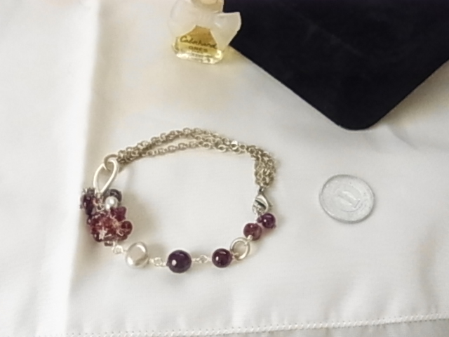 ビーズ使いが素敵 パール調ビジューやアメジスト調ビジュー 可愛いデザインのブレスレット▽