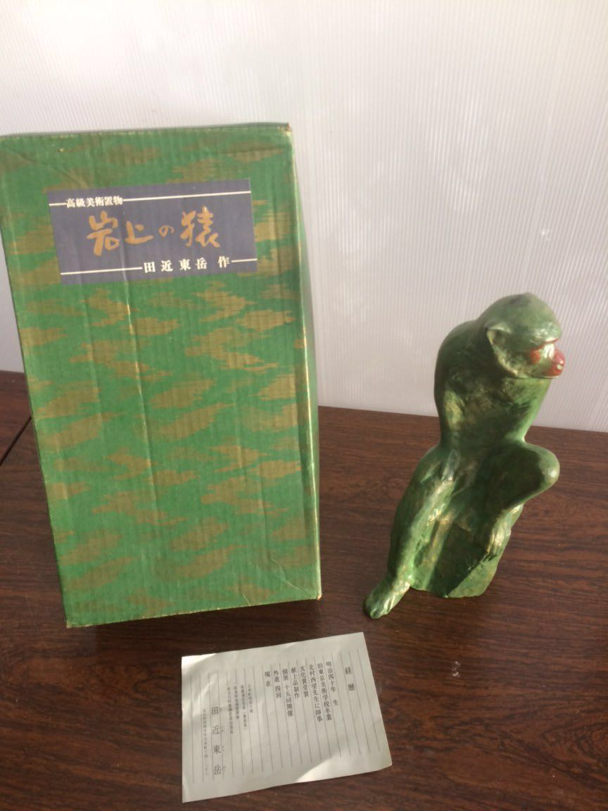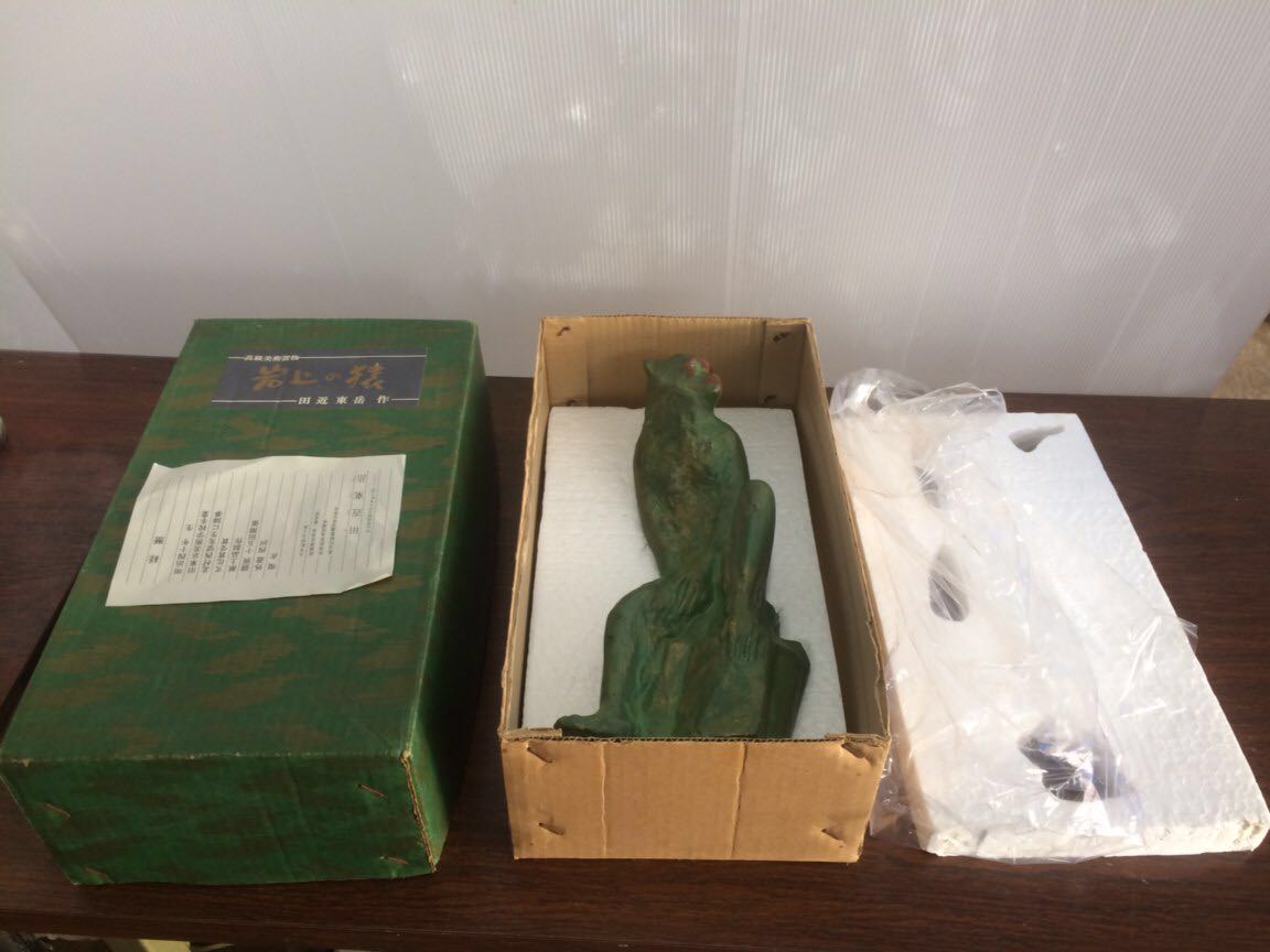 送料無料 岩上の猿 高級美術置物 田近東岳 作