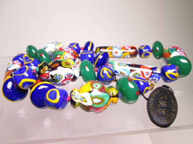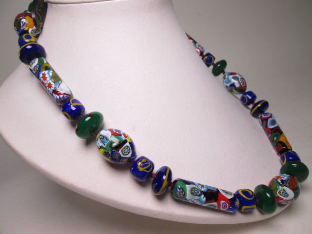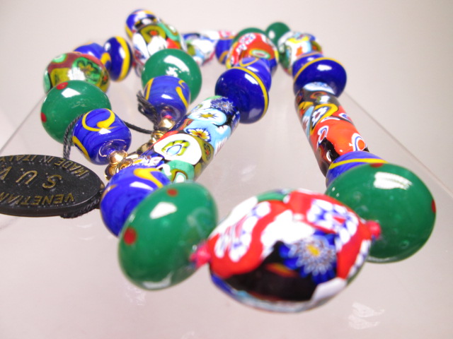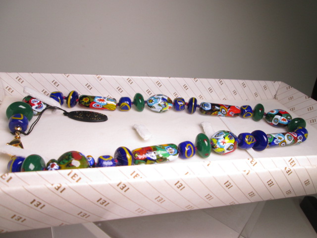 ☆イタリー製 ベネチアン硝子トンボ玉の綺麗なロングネックレス ケース付 未使用