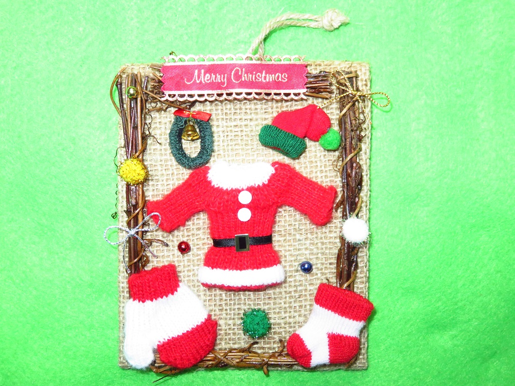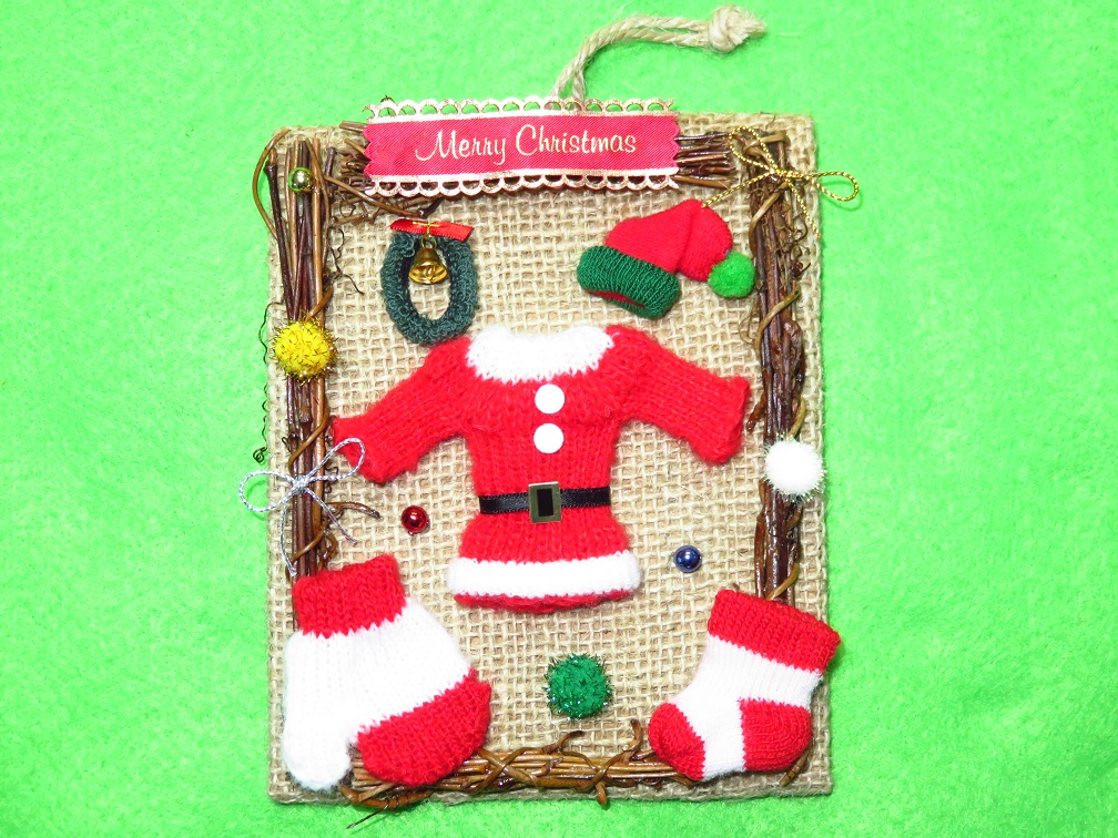 【☆クリスマス ニット付き 壁掛け☆】*ベージュ* X'mas飾り おしゃれ雑貨 ウォールインテリア ラタン ジュート クロス くりすます