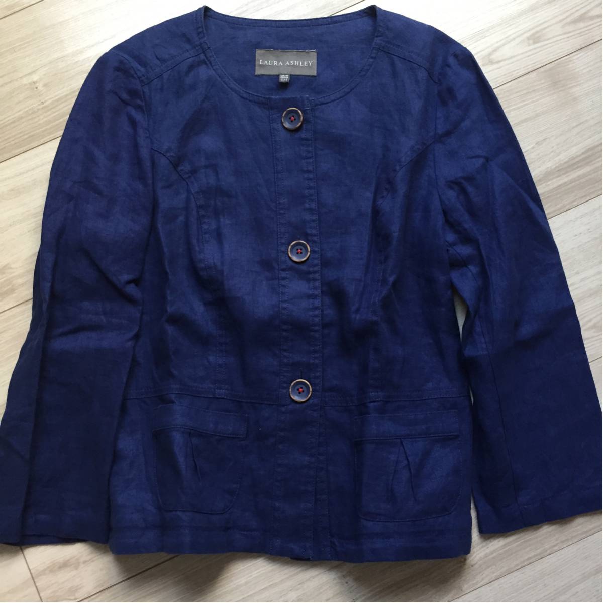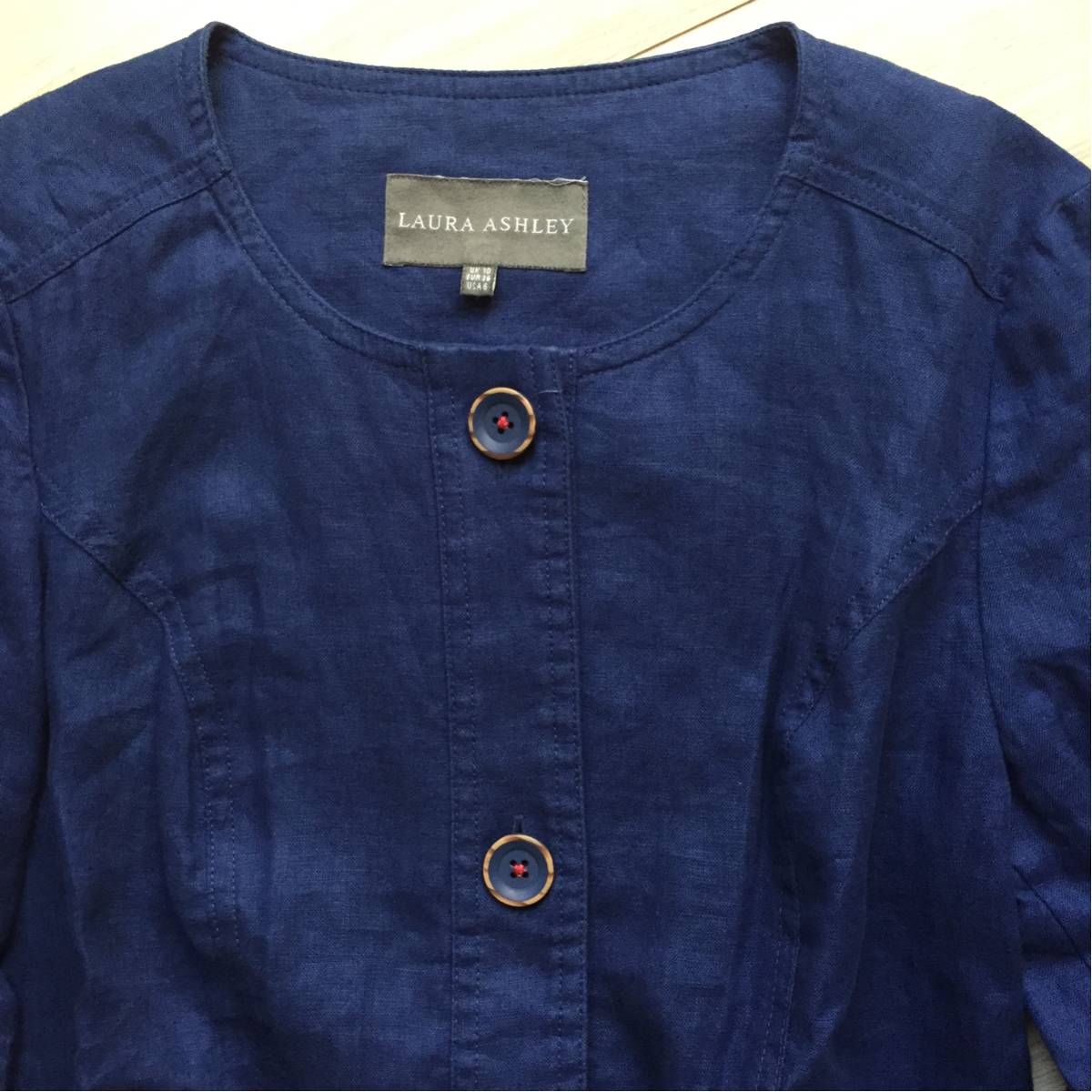 極美品 ローラアシュレイ LAURAASHLEY 素敵な麻100ノーカラージャケット