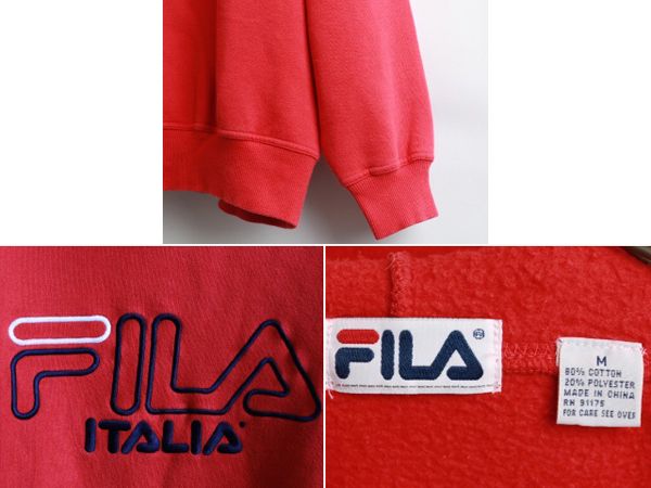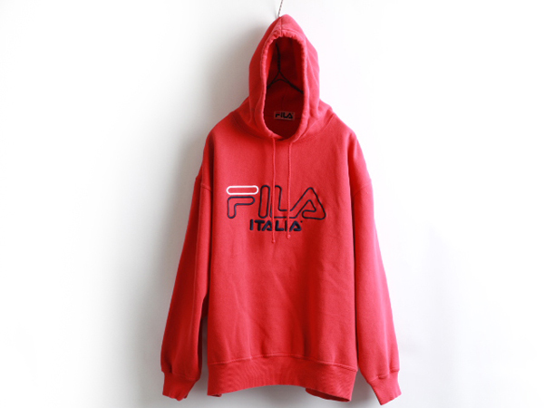 | 商品名 | 90's■ フィラ FILA ビッグロゴ 刺繍 スウェット フード パーカー ( 男性 メンズ M ) 赤 プルオーバー トレーナー スエット 古着 90年代 |