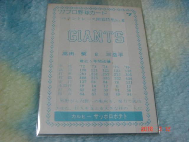 カルビー '77年 プロ野球カード 『'77ペナントレース開幕特集』NO.7(高田/巨人) 青版