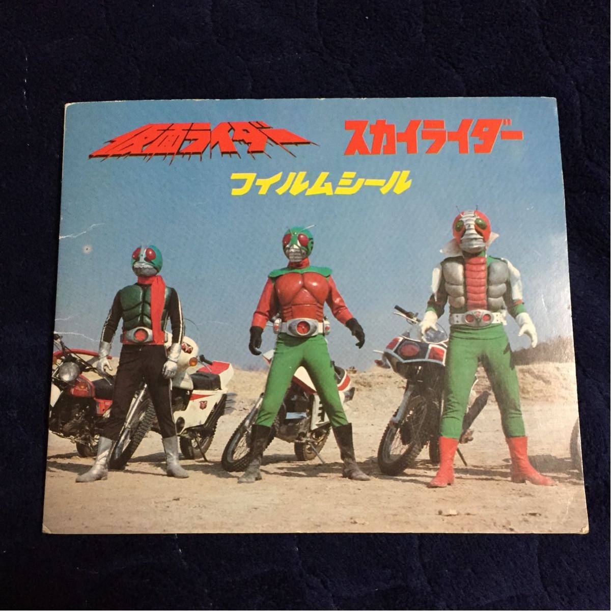 昭和時代に駄菓子屋さんなどで売っていた仮面ライダーとスカイライダーのフィルムシール(専用ファイル付)です。