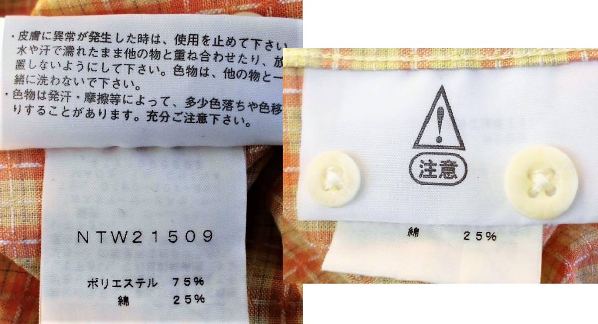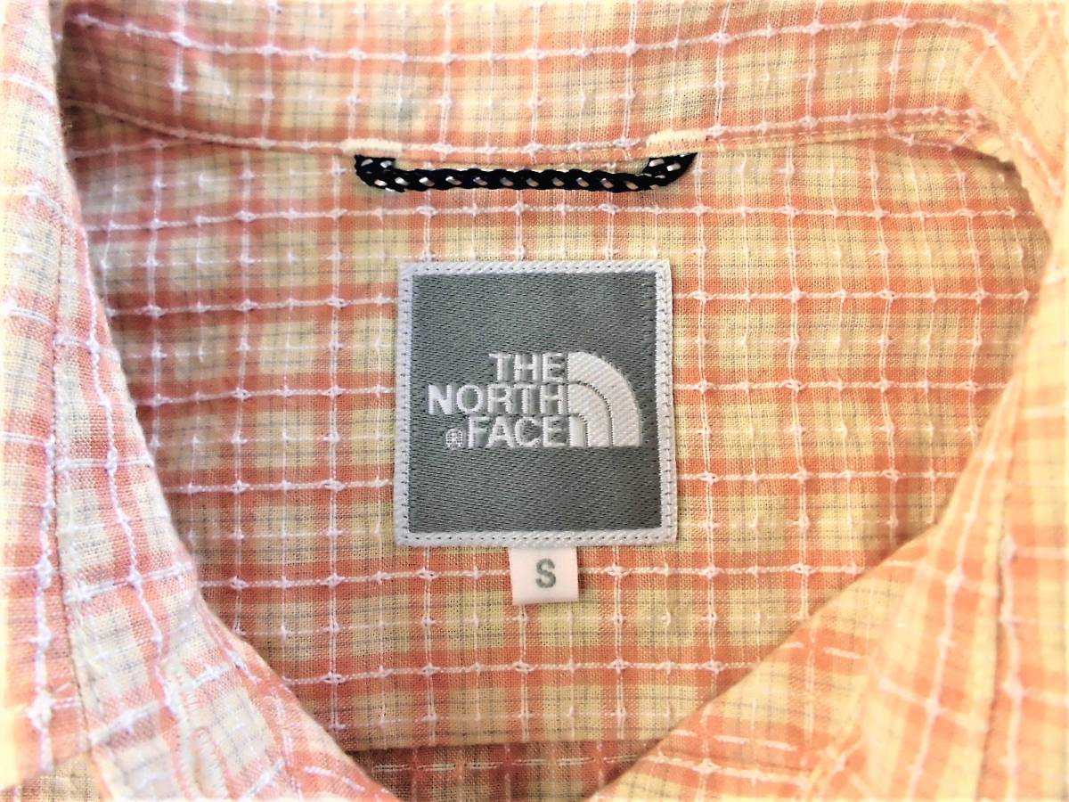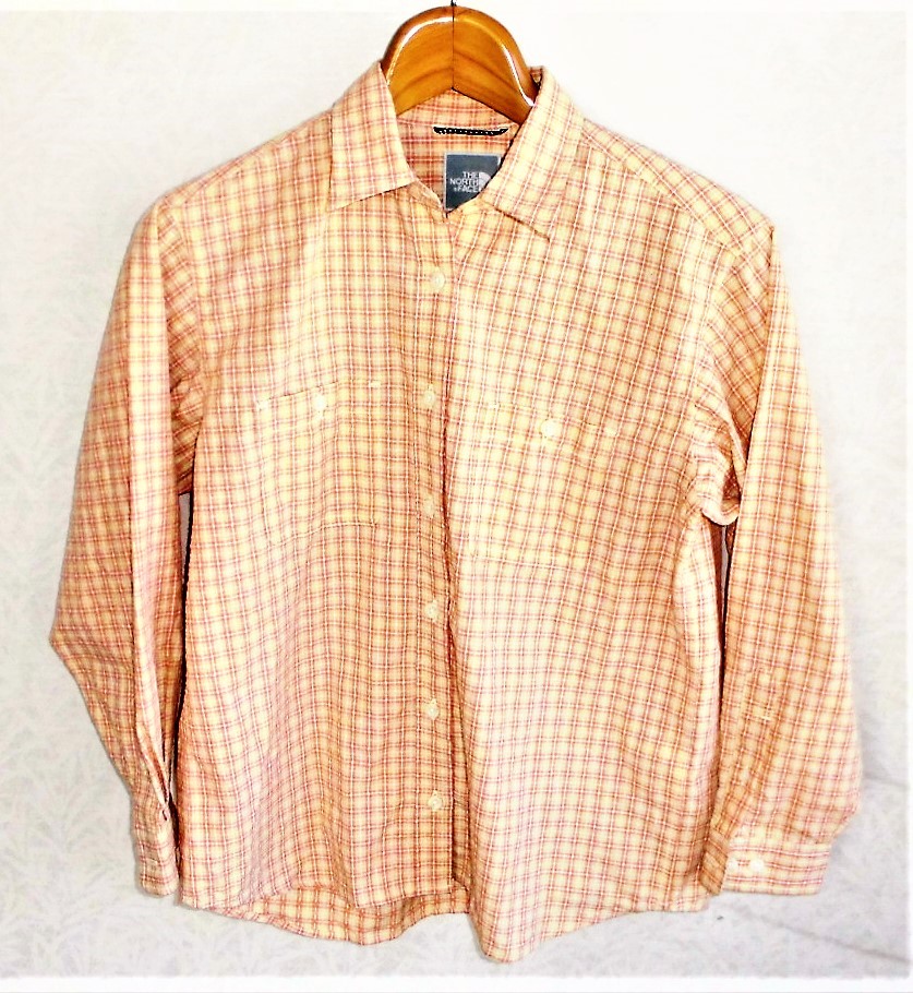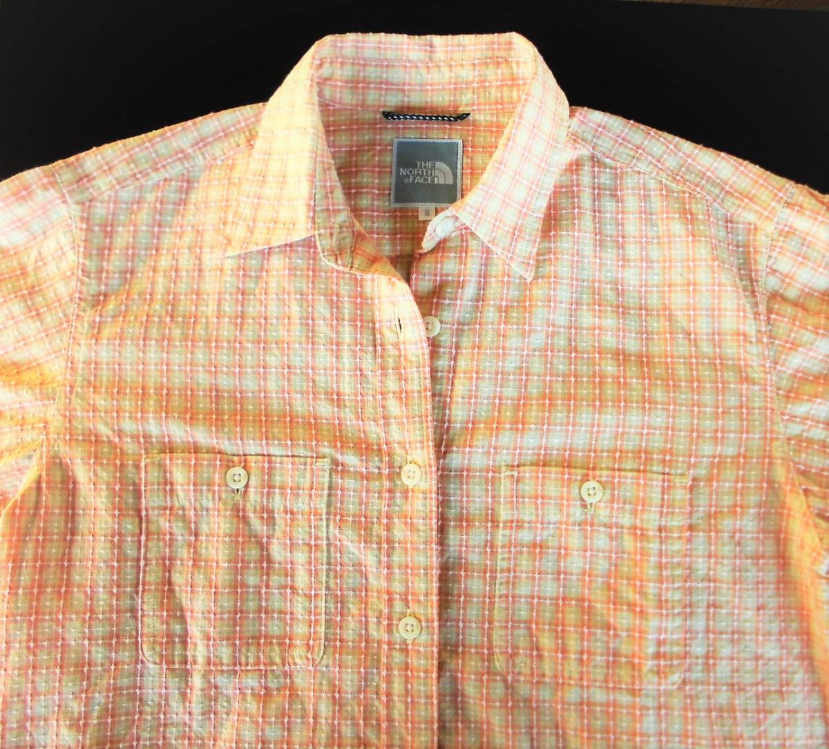 ★♪~即決、ザ・ノースフェイスTHE NORTH FACE、吸汗速乾 長袖清涼シャツ/レディースSオレンジ系チェック柄/美品~♪★