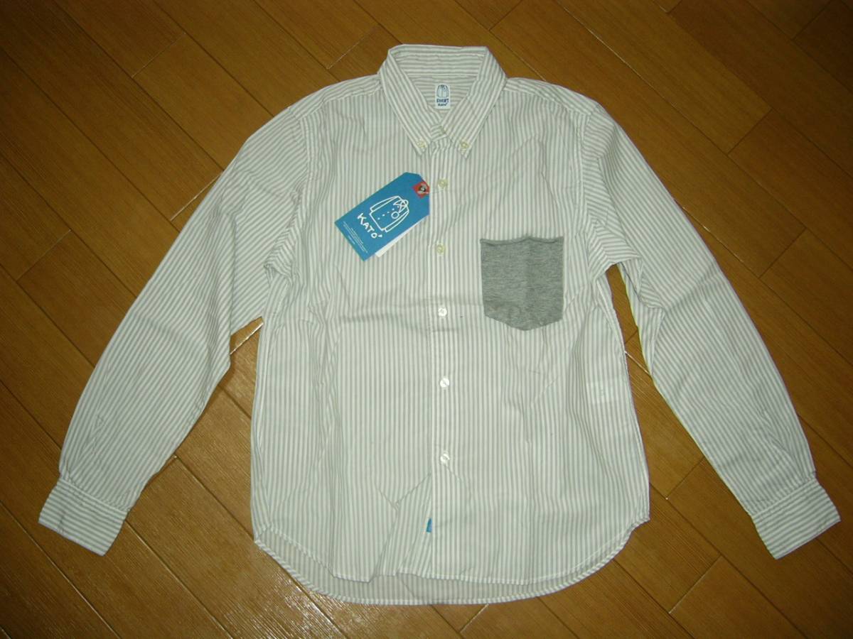 新品 KATO' カトー ストライプシャツ XS 灰白系 定価15000円