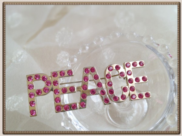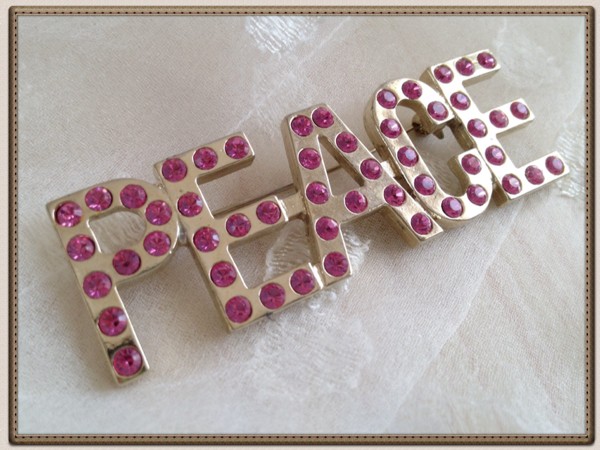 ★PEACE★ピンクのラインストーンが可愛いピースブローチ★