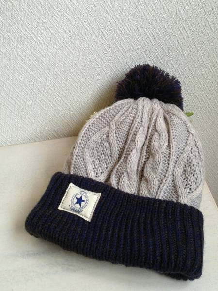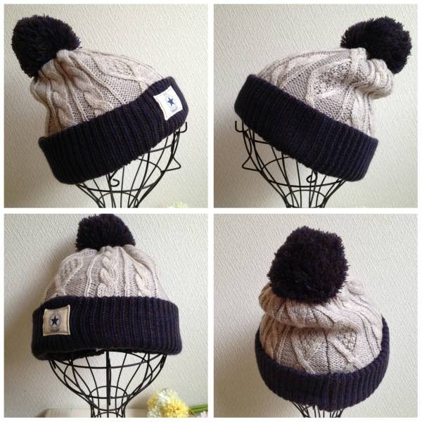 縄編みが可愛いボンボン付きニット帽です。