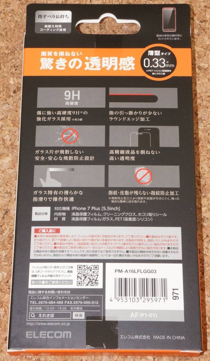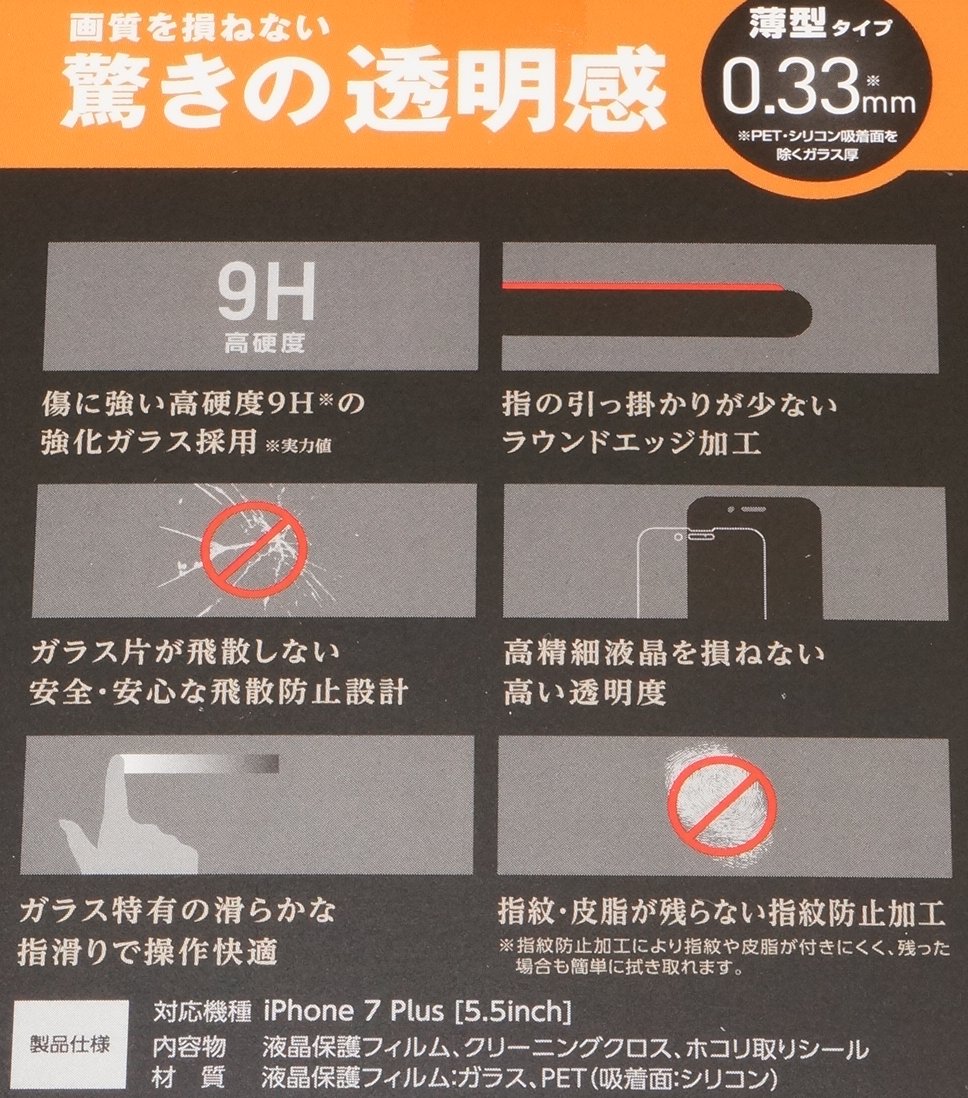 ELECOM iPhone7 Plus 液晶保護ガラスフィルム 驚きの透明感 0.33mm 9H 新品・未開封です。