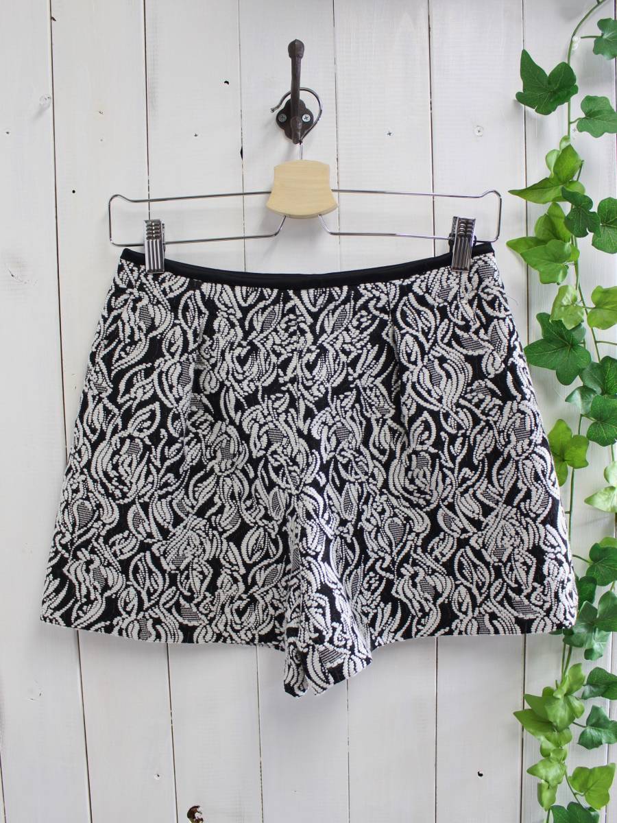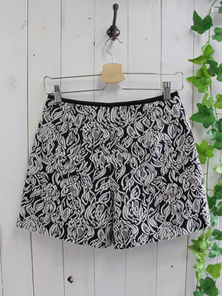 一度着 美品*ノーリーズ NOLLEY'S*総刺繍 タックショートパンツ 36 ブラック/a43