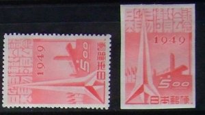 昔懐かしい切手2種3枚組 【新聞週間】 ペン先型の紙型 1949.10.1.発行 + 日本貿易博覧会 目打有 無目打 二枚 1949.3.15.発行