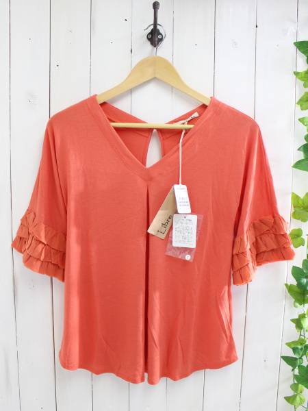 新品*ナチュラルスタンス リーブル Libre*背中開きフリル袖VネックカットソーF