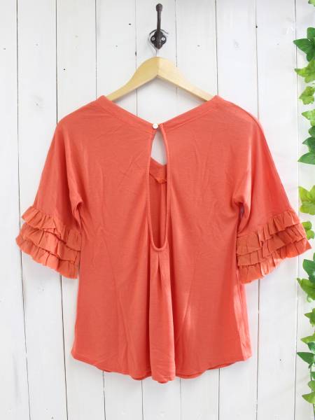 背中開きフリル袖Vネックカットソーの出品です(*^_^*)