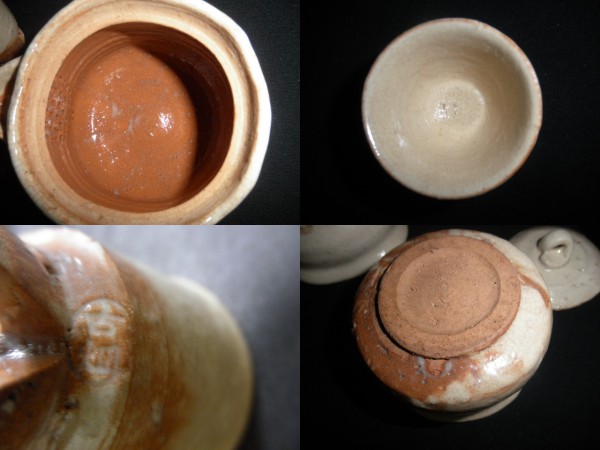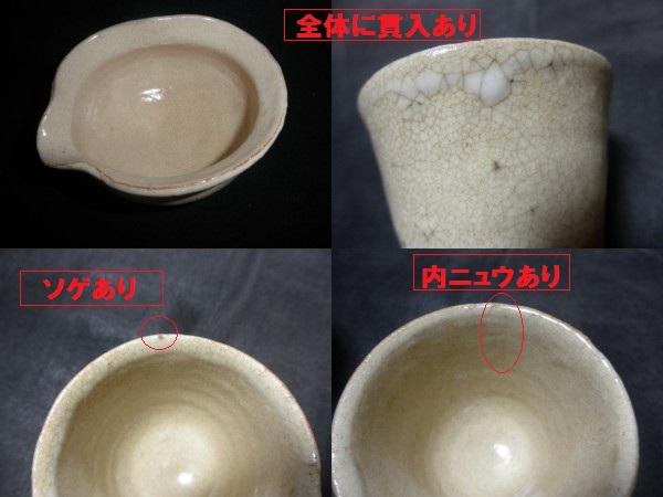 | 古~いぃ(時代はよくわかりません)萩焼の煎茶茶器揃えです。 骨董好きのおじいさんからの贈り物 趣のある茶器揃えです。 茶器1 湯冷まし1 湯呑6個です。 箱なし 画像で表示のように湯呑のふちにソゲ1点、内ニュウ1点 全体に時代貫入が見られます。ご理解ください。 古畑の銘印が見られます。 サイズ 茶器 上径8.4cm×10.8cm(口先まで) 湯冷まし8.5cm×10.6cm(口先まで) 煎茶湯呑5.5cm×5cm ------------------------------------------------------------------------------------------- 神経質なお方・些細な事が気になるお方、 または、新品をお求めのお方は、ご入札をお控えください。 ♪出品時、十分確認はいたしておりますが、稀にキズなど見落し がある場合がございます。中古品をご理解の上、ノークレームノーリターンでお願いいたします。 ―――――――――――――――――――――――――――――――――― 画像に写しきれないキズや色の剥れた部分、見落とし等あるかもしれませんが、ご理解の上ご入札をお願いします。 アンティークの為、お客様との見解の相違が多少あるかと思いますがご理解の上、ご入札よろしくお願い致します。 ーーーーーーーーーーーーーーーーーーーーーーーーーーーーーーーーーーーーー ♪お客様のPC環境で、実物の商品の色と多少の誤差が生じる場合がございます。それらの点を十分ご理解いただいた上でご入札頂きますようお願い申し上げます。 ♪お客様の思い描くイメージが違うと言った返品はご勘弁ください。 ♪システム手数料・消費税、梱包代金等、一切頂戴致しておりませんので、ご安心して御落札下さい。 ♪発送は基本的に、ゆうパック80サイズ(持込割引120円引)での発送になります。 ♪梱包材は原則的段ボールなど再生のものを利用しております。 プチプチで包んでしっかり丁寧梱包を心がけていますのでご安心ください。 ♪商品の説明及び注意事項に(同意されての上で)ご入札をお願い致します。 ―――――――――――――――――――――――――――――――――――――――― | |||