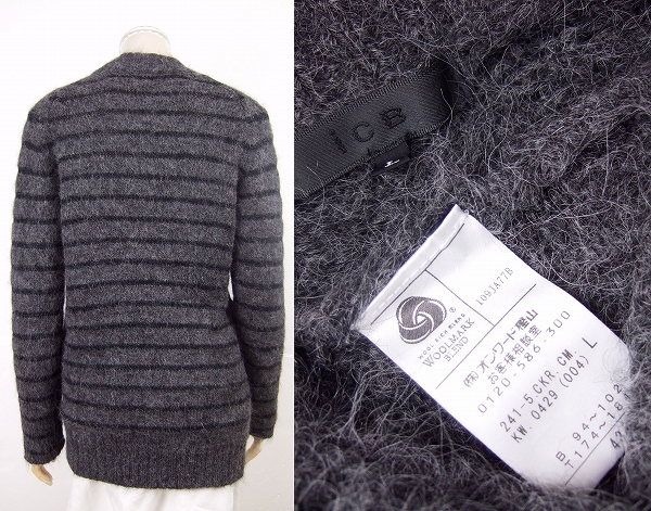 ![]() ![]() 落札後はオークション終了のお知らせメールに出品者からのメッセージが御座います。 自己紹介欄には急な休み等の記載をする場合が御座いますので一度お目通し頂きます様お願いいたします。ご一読の上オークション終了後2日以内の連絡、 落札後4日以内のご入金のお約束を守って頂ける方のご入札をお待ちしております。 小さい子供がおりますのでお急ぎのお取引を希望される方のご入札は遠慮下さいませ。 ---↓ここにブランド名記入---- ブランド名:icB アイシービー (株)オンワード樫山 ---↓ここに特徴記入---- 特徴:毛足あるとても滑らかで暖かいアルパカ混ニットです。濃いグレー系×黒ボーダーの中厚でふわりとした温もり!深いVネック&前ポケットのゆったりロングニットです。 ---↓ここにサイズ記入---- サイズ : Lサイズ 表示(トルソーは9号です) 実寸(平置き採寸) 肩幅41cm、身幅48cm、袖丈62cm、着丈73cm、ウエスト43cm、裾幅44cm ---↓ここに素材記入---- 素材 : アルパカ83% ナイロン17%(スリット糸使用)