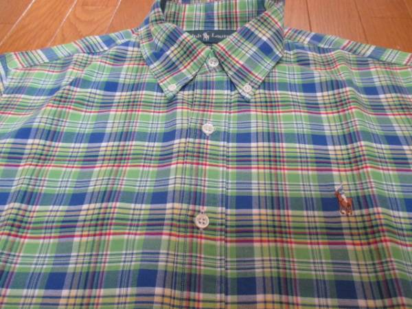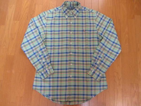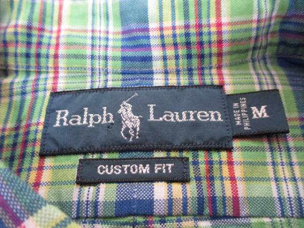 グリーン系のチェック柄で、サイズ表示は「M」です。