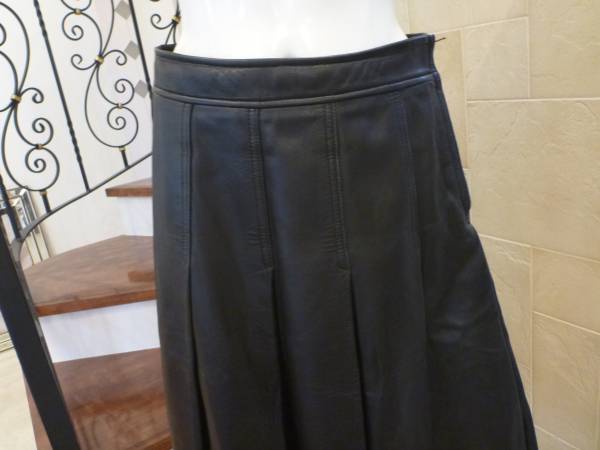 ◆黒色 羊革のプリーツスカートは珍しい。内側も冷たくないように工夫されております