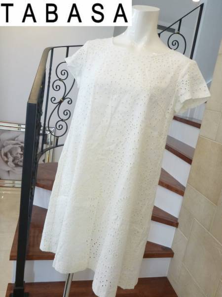 美品 TABASAタバサ 白 ホワイト 刺繍 ワンピース 34