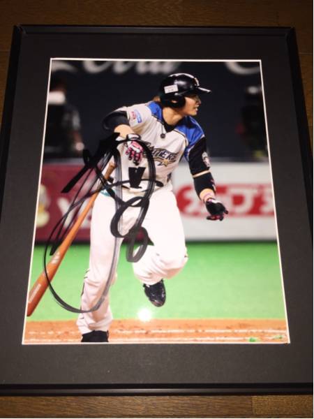 北海道日本ハムの西川遥輝選手の直筆サイン入り6切り生写真額装品です。(額の種類は多少変わる事がございます。)