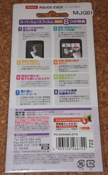 ELECOM AQUOS EVER SH-04G 液晶保護フィルム スーパースムース 高光沢 新品・未開封です。