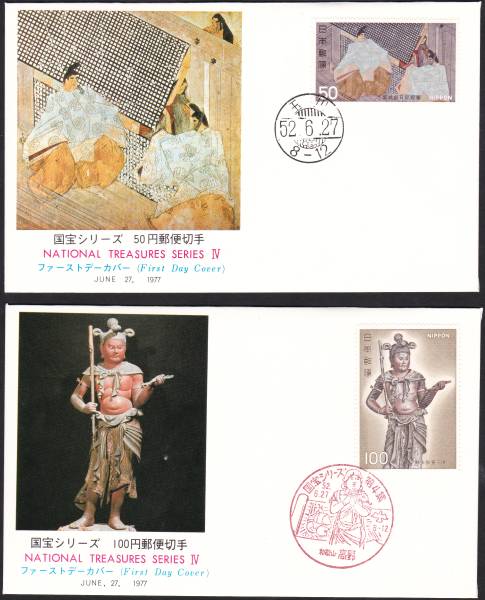 FDC 1977年 国宝シリーズ第4次2集2種美術カバー