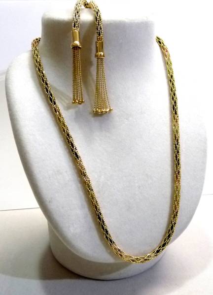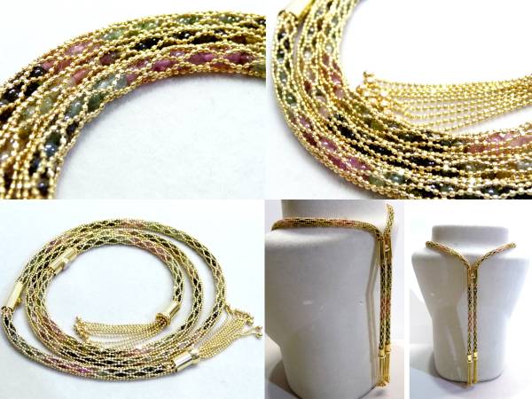 トルマリン&18金 編み込みデザインネックレス 中古良品