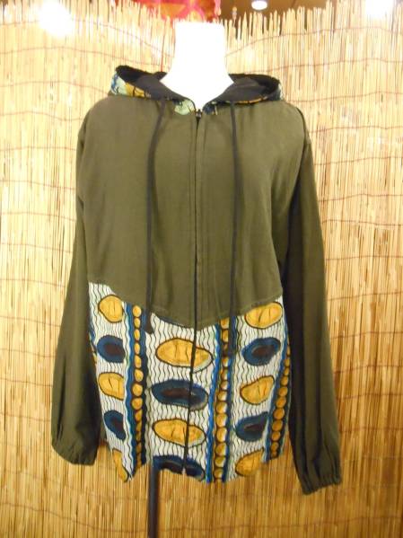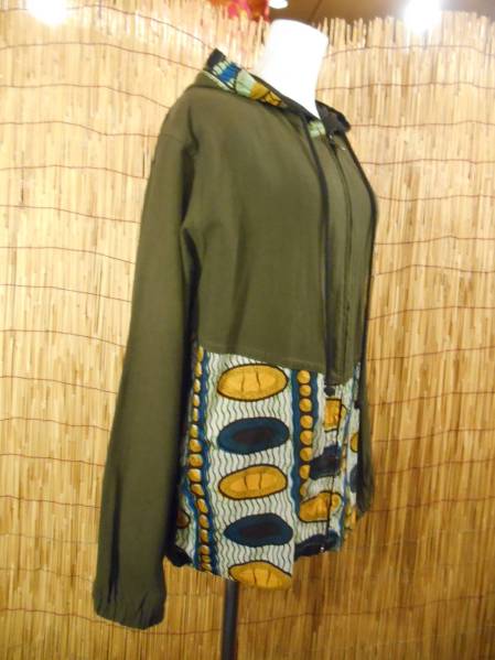 ②訳あり*男女OK コットン+パーニュ アフリカン ジップアップパーカー