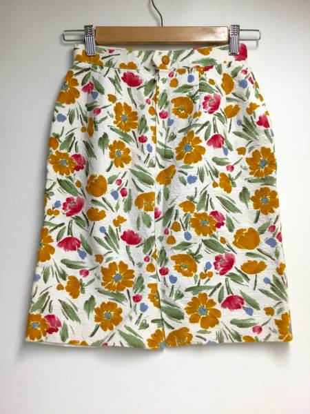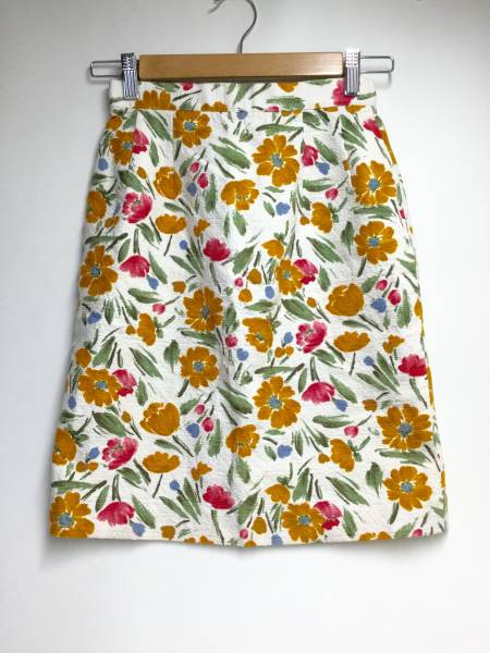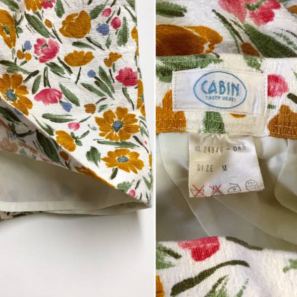 ★ CABIN 花柄 タイトスカート M 白 日本製 ボタニカル 裏地有