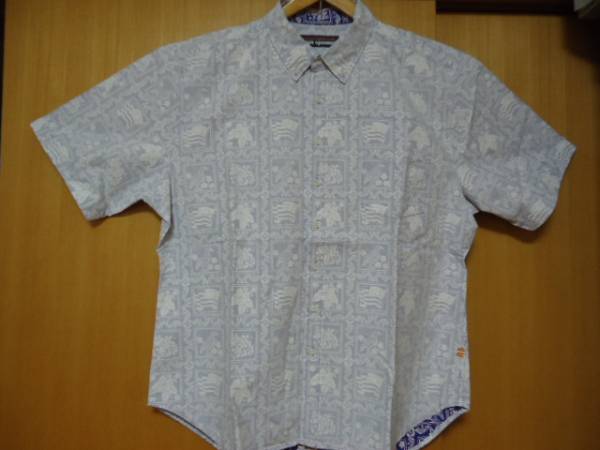 ハワイにて、古着として、購入しました。レインスプーナー社製。オールオーバー。コットン55%・LYOCELL45%混合素材です。ロゴボタン。カラーは、白色地に、ハワイ州の旗・ハワイ州の鳥・花柄です。クリーニング済み。中国製。なお、当商品のサイズ表示は、全てUSAサイズです。サイズ表示は、XXLですが、平置き実寸を重視して下さい。なお、少々誤差は、ご了承下さい。肩幅約53センチ・身幅(脇の下)約64センチ・丈約78センチです。目立ったダメージありませんが、USED物なので、古着に、ご理解のある方・24時間以内に、お手続き入力後、期限内にかんたん決済、出来る方のみ、ご入札をお願い致します。この商品は、1点物です。番号は、こちらの整理番号です。 ※※発送方法・送料は、レターパックライト郵便(追跡可能・補償無し)ですと、430円又は、レターパックプラス郵便(追跡可能・手渡し配達・補償無し)ですと、600円又は、ゆうパック送料着払い便(持ち込み割引有り・追跡可能・手渡し配達・補償有り・かんたん決済時は、送料0円ですが、送料のみ到着時支払い)です。※※ ☆★★★★★☆送料は、変わりますが、何点でも、同梱包可能です。数点落札されましたら、まとめて取引を、選択お願いします。☆★★★★★☆