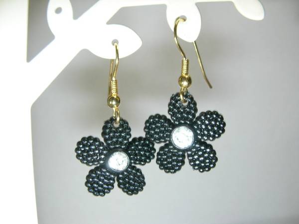 かわいい黒のお花デザインで、色んなコーディネイトに合わせやすいピアスかと思います^^ノシ