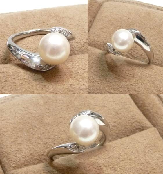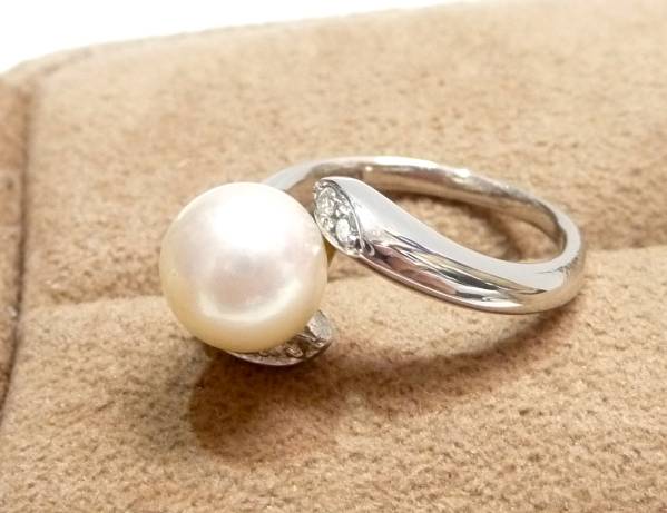 約9mm珠真珠 Pt900 天然ダイヤ 13.2号 未使用品/美品