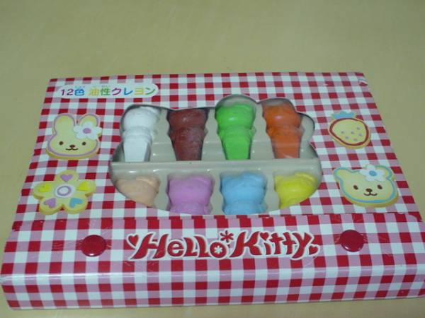 珍品 デザイン HELLO KITTY 12色 油性 クレヨン セット ケース付