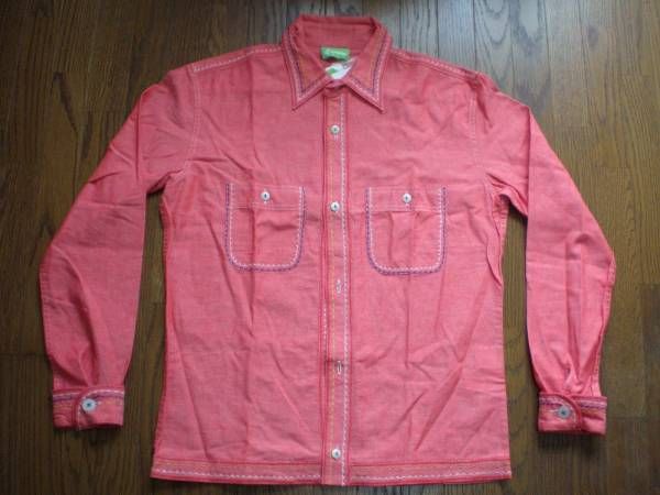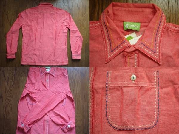 CROCS 民族調 ステッチ 長袖 シャツ M レッド~ピンク系 クロックス サンダル ワーク アメカジ ネイティブ アウトドア キャンプ ハイキング