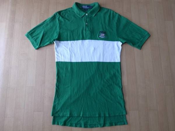 90's POLO RALPH LAUREN 星条旗 ロゴ 刺繍 ワンボーダー 半袖 ポロシャツMポロ ラルフローレン SPORTスポーツ カットソー Tシャツ アメカジ