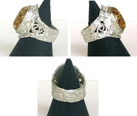 送料無料! ハンドメイド(手作り)の1点物です。 大珠の琥珀の回りをやさしく凸凹感のあるシルバーで縁取りました。 側面に透かしを入れ、軽くエレガントな感じに仕上げています。 市場では見られない高級感のあるおすすめの一点です。 ※琥珀について 数千万年前の頃の針葉樹林等の樹脂が、長い間地中にあって化石化したものが 琥珀なのです。 気候や環境によって、様々な色や形の琥珀が生まれました。 樹脂が硬化する時に飛んでいた昆虫や草木などが混入されて、 その時代の世界を想像することが出来ます。 気泡が入っているものは、光の屈折によって、キラキラと輝いて、独特の魅力があります。 琥珀は大地との強い結びつきがあり、癒しの効果があるとされています。 又、幸福の石とも云われ、プレゼントやお守りに用いられています。 (お手入れ)琥珀は比較的柔らかいので、布などに包んでやさしく保管してください。 ヘヤスプレーなどにご注意下さい。 光沢を失ってしまう事があります。 ご使用後は、ソフトな布で軽く拭いてください。 素 材:琥珀 シルバー950 サイズ:約16号 ・リング巾・8〜10mm 琥珀・19×14mm ri-127 市場価格の5割引でご奉仕いたします。 無料でラッピング致します。ご希望の方はその旨お申し出下さい。 | |||