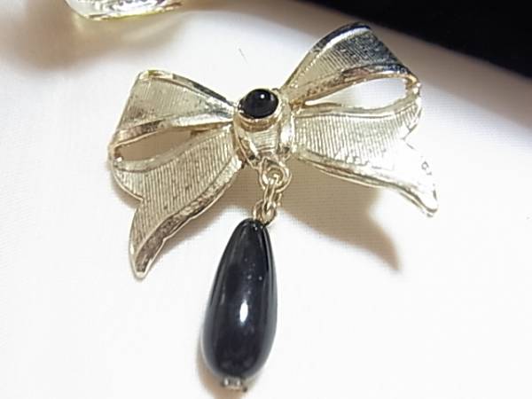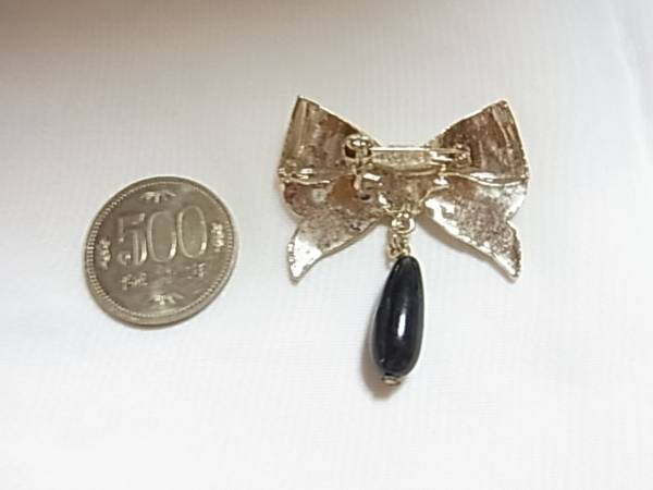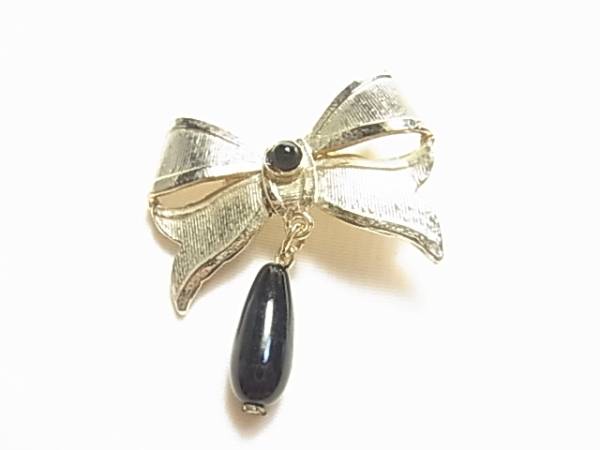 金色と黒色のコンビのリボンモチーフデザインの可愛いブローチ△++