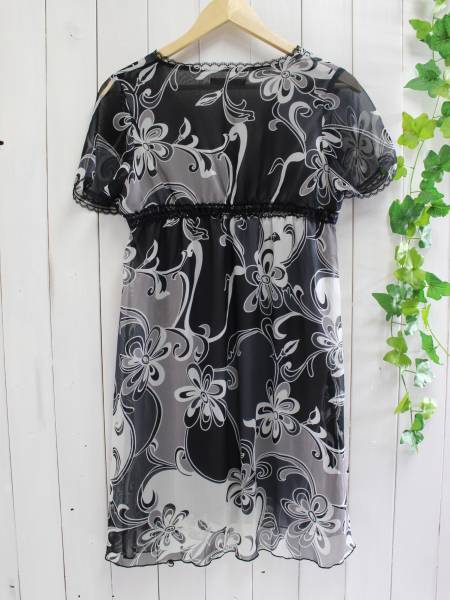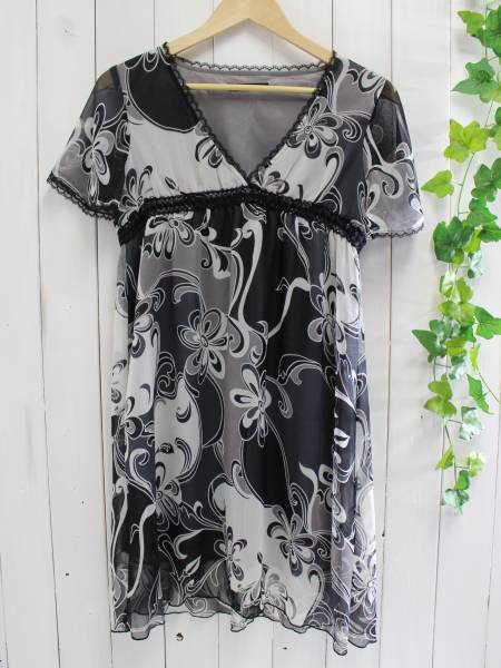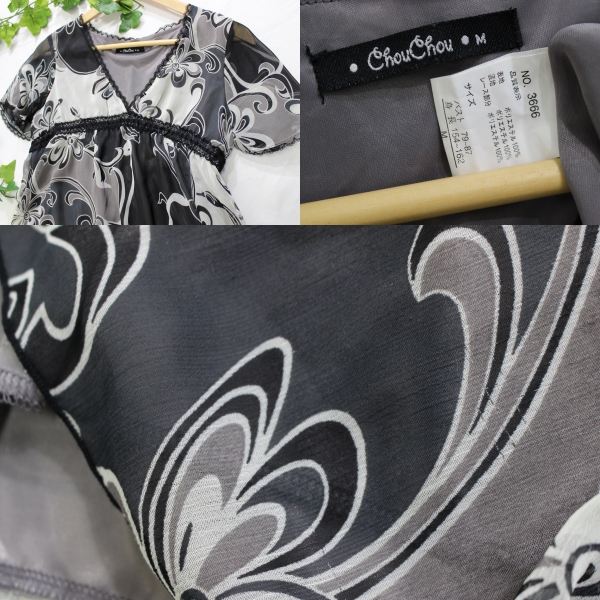 ◆ChouChou シュシュ◆花柄モノトーンシフォンワンピース M