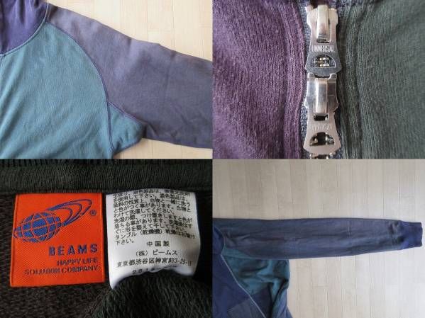 BEAMS クレイジー フルジップ パーカー L ネイビー系 グリーン系 ビームス フーディー フード スウェット トレーナー アウトドア キャンプ