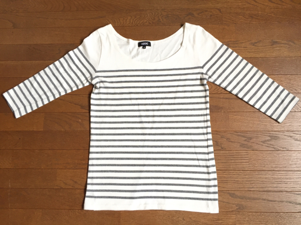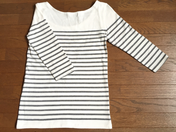 *白地にグレーのボーダーが爽やかで可愛い、7部袖のカットソー。